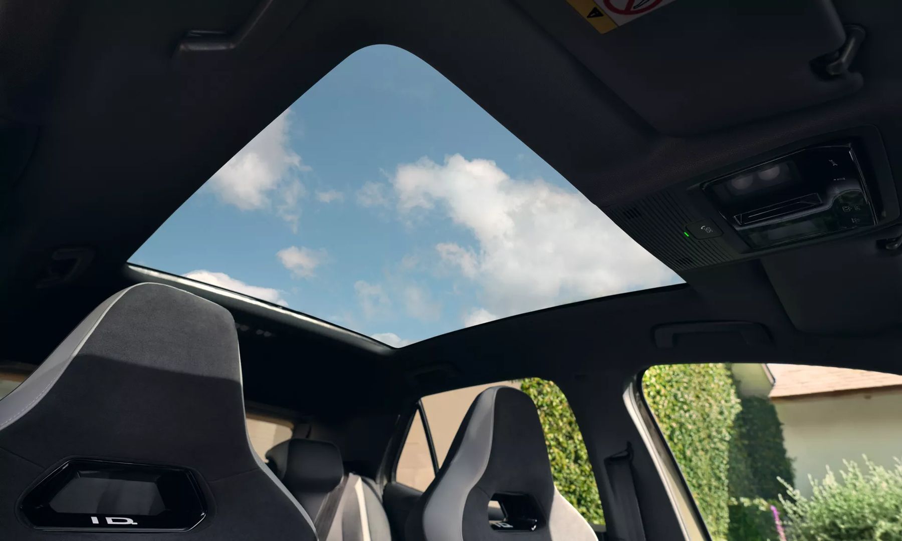 Mit der großen Glasfläche, die fast über die gesamte Dachbreite reicht, ist das optionale Panoramaglasdach schon selbst ein Hingucker. Noch schöner: der freie Blick hinaus in den Himmel. Das getönte Glas sorgt zudem für angenehme Temperaturen. Das Sonnenrollo schützt nicht nur vor zu viel Sonnenschein, es lässt sich auch sehr komfortabel per Sprachbedienung steuern. Sagen Sie zum Beispiel: „Hallo ID., zeig mir die Sterne!“ – und das Rollo öffnet sich.