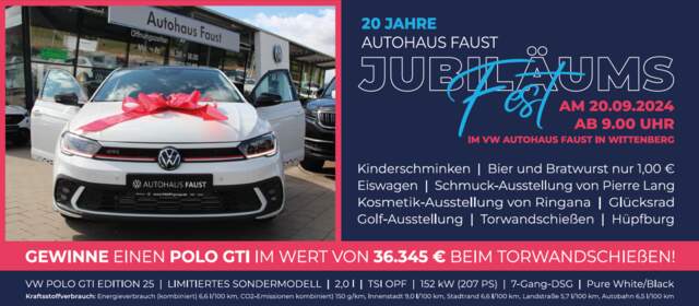 Am 20. September 2024 war es soweit: Das Autohaus Faust in Wittenberg feierte sein 20-jähriges Bestehen mit einem grandiosen Sommerfest. Zahlreiche Gästen kamen zusammen, um dieses besondere Jubiläum gemeinsam zu erleben. Das Event bot nicht nur einen Rückblick auf zwei Jahrzehnte erfolgreiche Firmengeschichte in Wittenberg, sondern auch zahlreiche Attraktionen und Aktivitäten für Groß und Klein.
