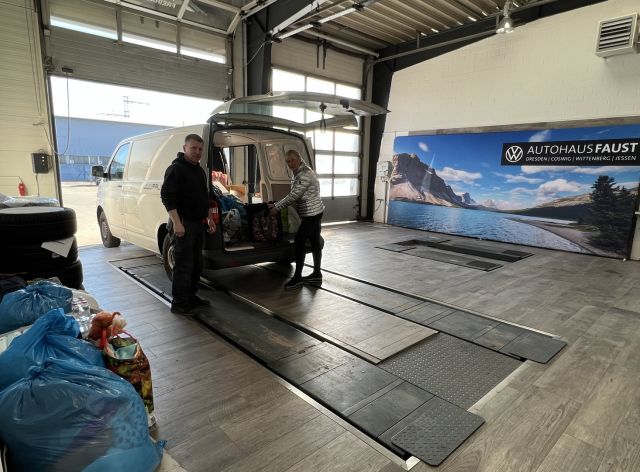 Die vielen Kisten, Kartons und Taschen mit Hilfsgütern konnten in unserer Autohaus Faust-Annahmestelle in der Arthur-Schnitzler-Straße direkt für den Transport verladen werden.