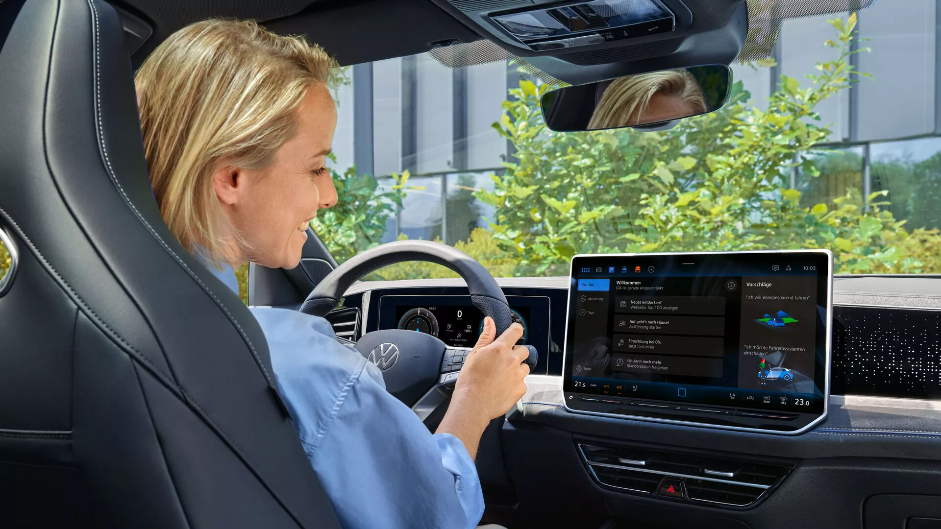 Der neue Sprachassistent „IDA" stellt sich Ihnen zukünftig auch visuell auf dem Mitteldisplay vor und Interaktionen können via Grafik nachvollzogen werden. Das optimierte System stellt zudem Rückfragen oder lässt sich ins Wort fallen. Ebenfalls können Sie mit „IDA" auf Weltwissen zugreifen, welches über Internetpartner (z. B. Wikipedia) zur Verfügung gestellt wird.