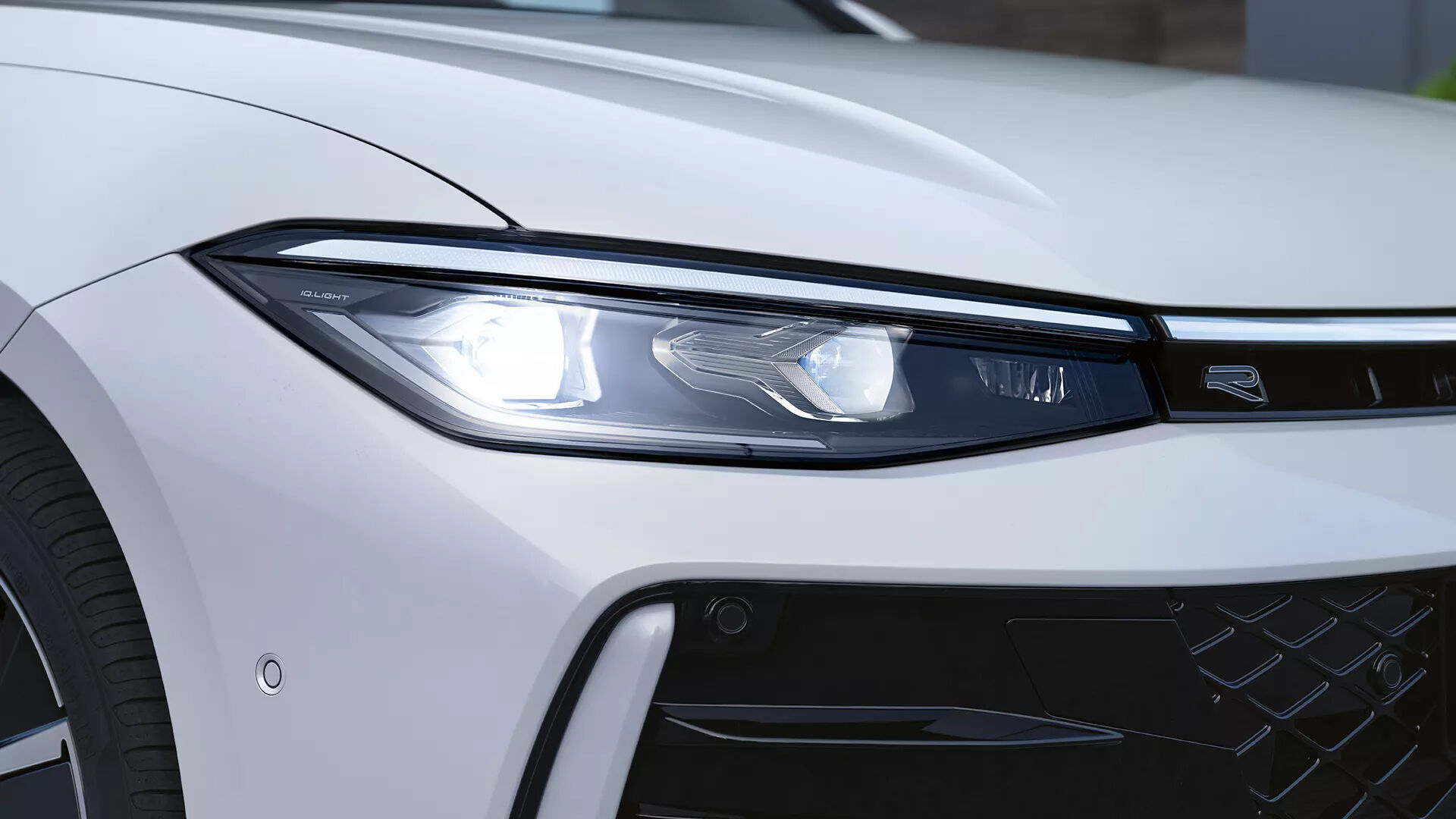 Schon auf den ersten Blick zeigt sich der neue Passat auf Wunsch mit einem Highlight: dem innovativen IQ.LIGHT. Die Matrix-Technologie der Scheinwerfer ermöglicht eine dauerhafte Fernlichtfahrt, ohne andere Verkehrsteilnehmende zu blenden.1 Ein elegantes Lichtband zieht sich zwischen den Scheinwerfern und dem Volkswagen Logo. Zum optionalen Paket gehören auch die 3D-LED-Rückleuchten mit animiertem Bremslicht und integriertem dynamischen Blinklicht, das mit fließender Lichtbewegung die Richtung anzeigt.