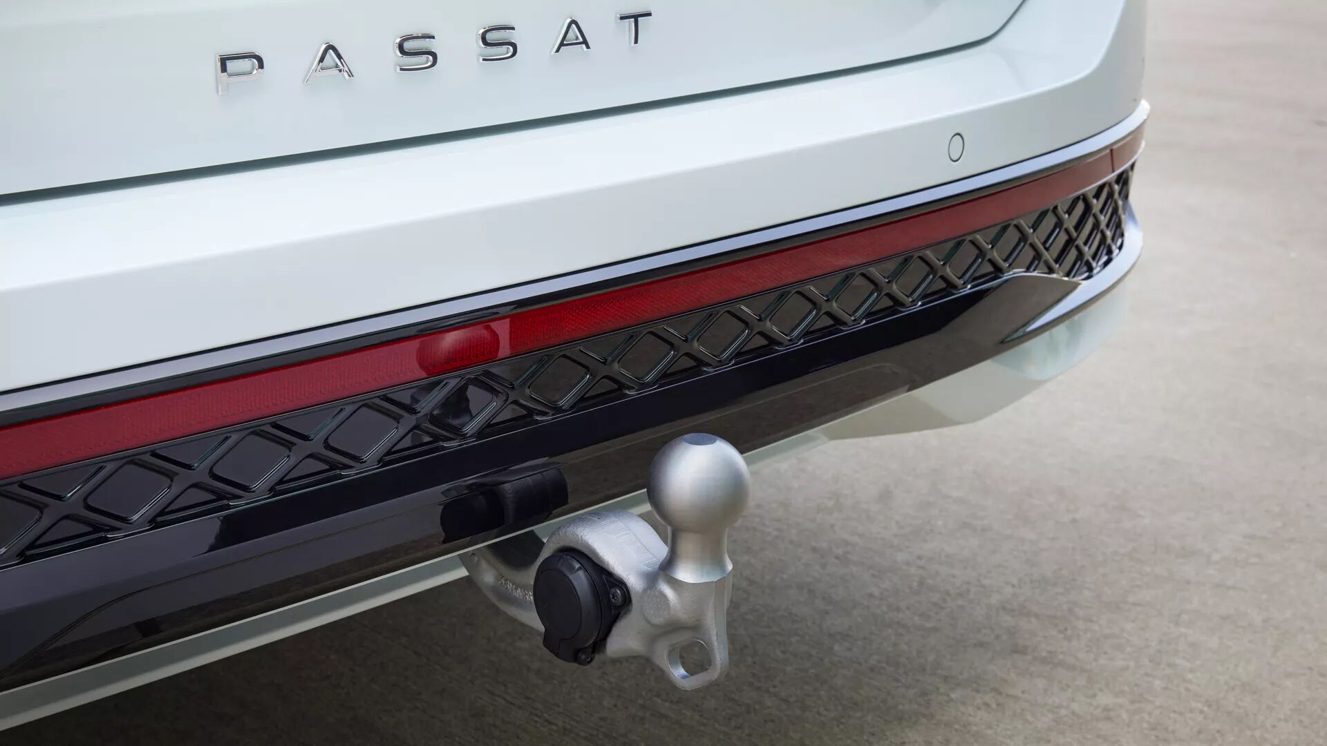 Der neue Passat zieht bis zu 2,2 Tonnen hinter sich her, zum Beispiel einen Camping- oder Pferdeanhänger. Die optionale Anhängevorrichtung ist unter dem Heck versteckt und klappt bei Bedarf via Knopfdruck halbautomatisch nach unten. In der höchsten Motorisierung (Passat R-Line Kraftstoffverbrauch in l/100 km: kombiniert 5,4-5,1; CO₂-Emission in g/km: kombiniert 142-134. Für das Fahrzeug liegen nur noch Verbrauchs- und Emissionswerte nach WLTP und nicht nach NEFZ vor. Angaben zu Verbrauch und CO₂-Emissionen bei Spannbreiten in Abhängigkeit von den gewählten Ausstattungen des Fahrzeugs.) wurde die Stützlast um zusätzliche 24 kg auf 90 kg erhöht, was nicht nur e-Bike Freunde freuen dürfte.