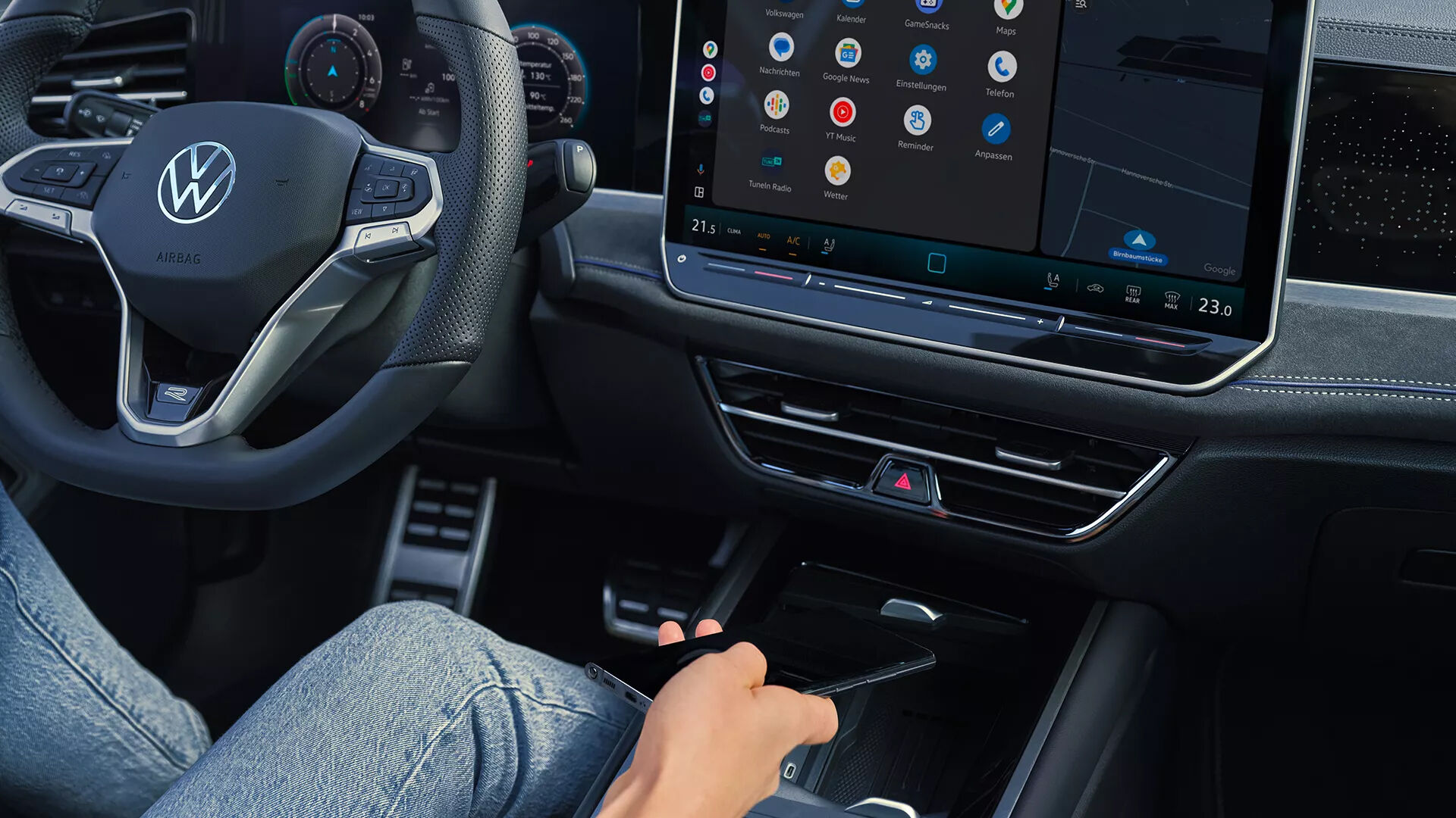 Auto fahren und dabei entspannt telefonieren? Die Telefonschnittstelle „Comfort“ bietet Ihnen das, was Sie dafür brauchen: Die Freisprecheinrichtung verfügt über Mikrofone in der Dachkonsole, während die internen Lautsprecher für eine hohe Klangqualität der Sprachausgabe sorgen. Das vordere Ablagefach verfügt zudem über eine induktive Ladefunktion für kabelloses Laden von bis zu zwei Mobiltelefonen mit Qi-Standard gleichzeitig.