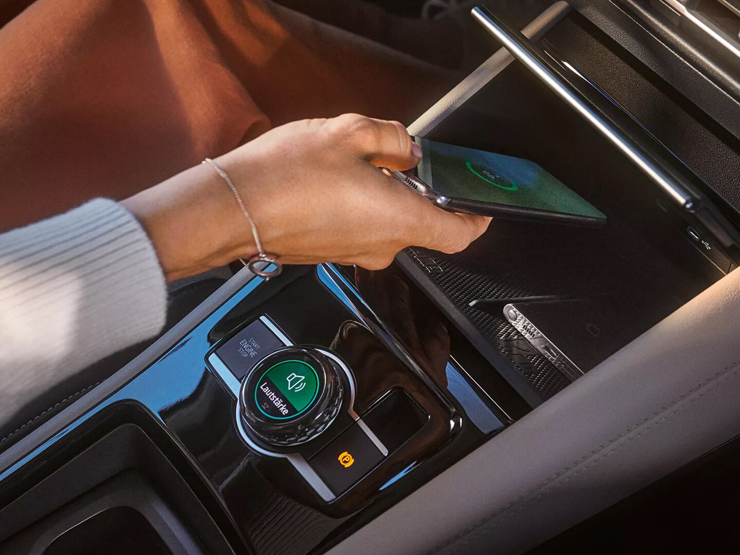 Auto fahren und dabei entspannt telefonieren? Die Telefonschnittstelle „Comfort“ bietet Ihnen alles, was Sie dafür brauchen: Die Freisprecheinrichtung verfügt über Mikrofone in der Dachkonsole, während die internen Lautsprecher für eine hohe Klangqualität der Sprachausgabe sorgen. Das vordere Ablagefach verfügt zudem über eine induktive Ladefunktion für kabelloses Laden von bis zu zwei Mobiltelefonen mit Qi-Standard mit 15 W Ladeleistung und Gerätekühlung gleichzeitig.