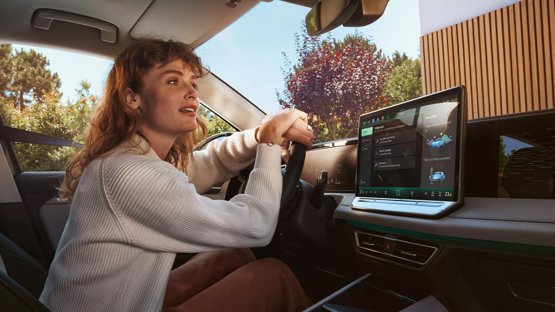 Mit dem neuen Sprachassistent „IDA“ können Sie Ihr Infotainmentsystem komfortabel bedienen.1,2 Wählen Sie zum Beispiel den richtigen Sender, den passenden Adressbucheintrag oder eine Rufnummer. Starten Sie die Funktion mit „Hallo IDA“ und machen Sie das Fahrzeug zum intelligenten Gesprächspartner. Der Sprachassistent versteht auch freie Formulierungen wie „Mir ist kalt.“ oder „Wo gibt es in Berlin japanische Restaurants?“. Zudem erkennt er dank digitaler Mikrofone, ob der Fahrer oder der Beifahrer spricht, um zum Beispiel die Klimatisierung gezielt der anfordernden Person bereitzustellen. IDA stellt sich Ihnen auch visuell auf dem Mitteldisplay vor und Interaktionen können via Grafik nachvollzogen werden. Zusätzlich stellt das System Rückfragen oder lässt sich ins Wort fallen. Außerdem können Sie mit IDA auf Weltwissen zugreifen, welches über Internetpartner zur Verfügung gestellt wird.