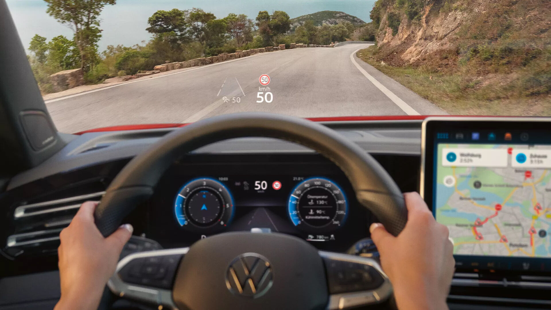 Möchten Sie nur die Geschwindigkeits- und Kilometeranzeige im Blick haben? Oder noch weitere Fahrdaten? Oder die Navigationskarte? Oder den Titel des Songs, den Sie gerade hören? Oder gleich mehreres davon? Sie haben es wortwörtlich selbst in der Hand: in jeder Situation die richtige Anzeige. Konfigurieren Sie sich Ihr hochauflösendes 26 cm (10,2 Zoll) großes Digital Cockpit Pro ganz einfach selbst. Und ganz genau so, wie Sie es möchten.